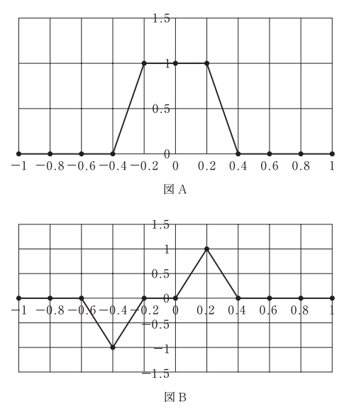 図Aに 1 次元フィルタ(-1,1,0)で重畳積分処理したものを図 B とする。