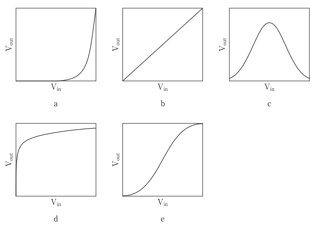 ただし、Vin は入力電圧、Vout は出力電圧、グラフは横軸・縦軸ともリニアス