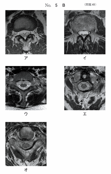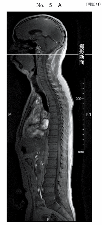 脊椎のMR像別冊No. 5Aを別に示す。位置決め像の断面で得られる画像別冊No. 5Bはどれか。