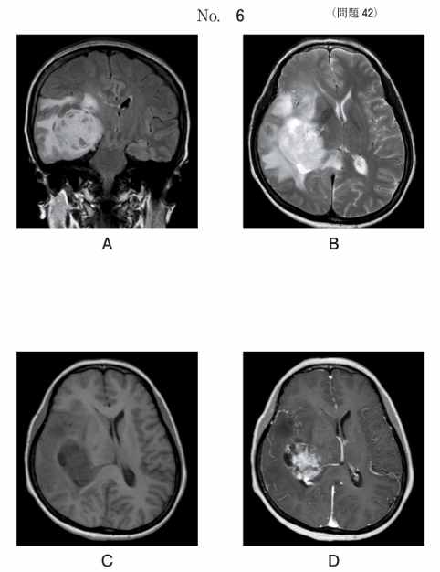 MR像別冊No. 6A、B、C、Dを別に示す。正しいのはどれか。2つ選べ。