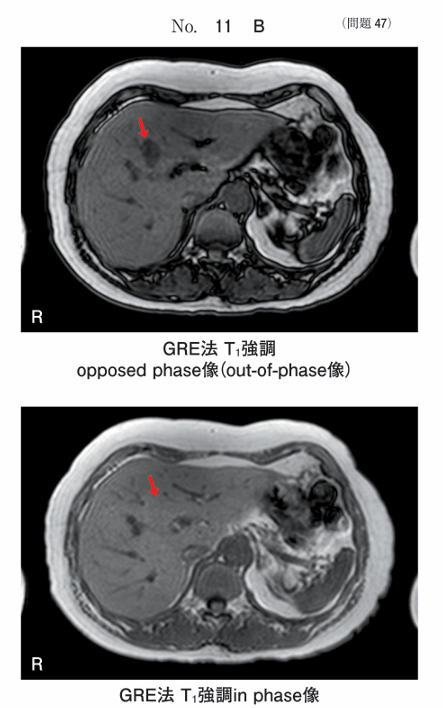 2.BはT1強調像である。